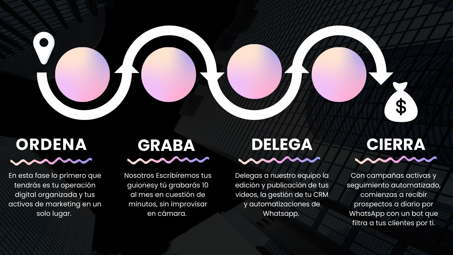 Solo debes llenar tu carpeta de marketing y grabar tus contenidos siguiendo nuestra guía. Nosotros hacemos el resto.